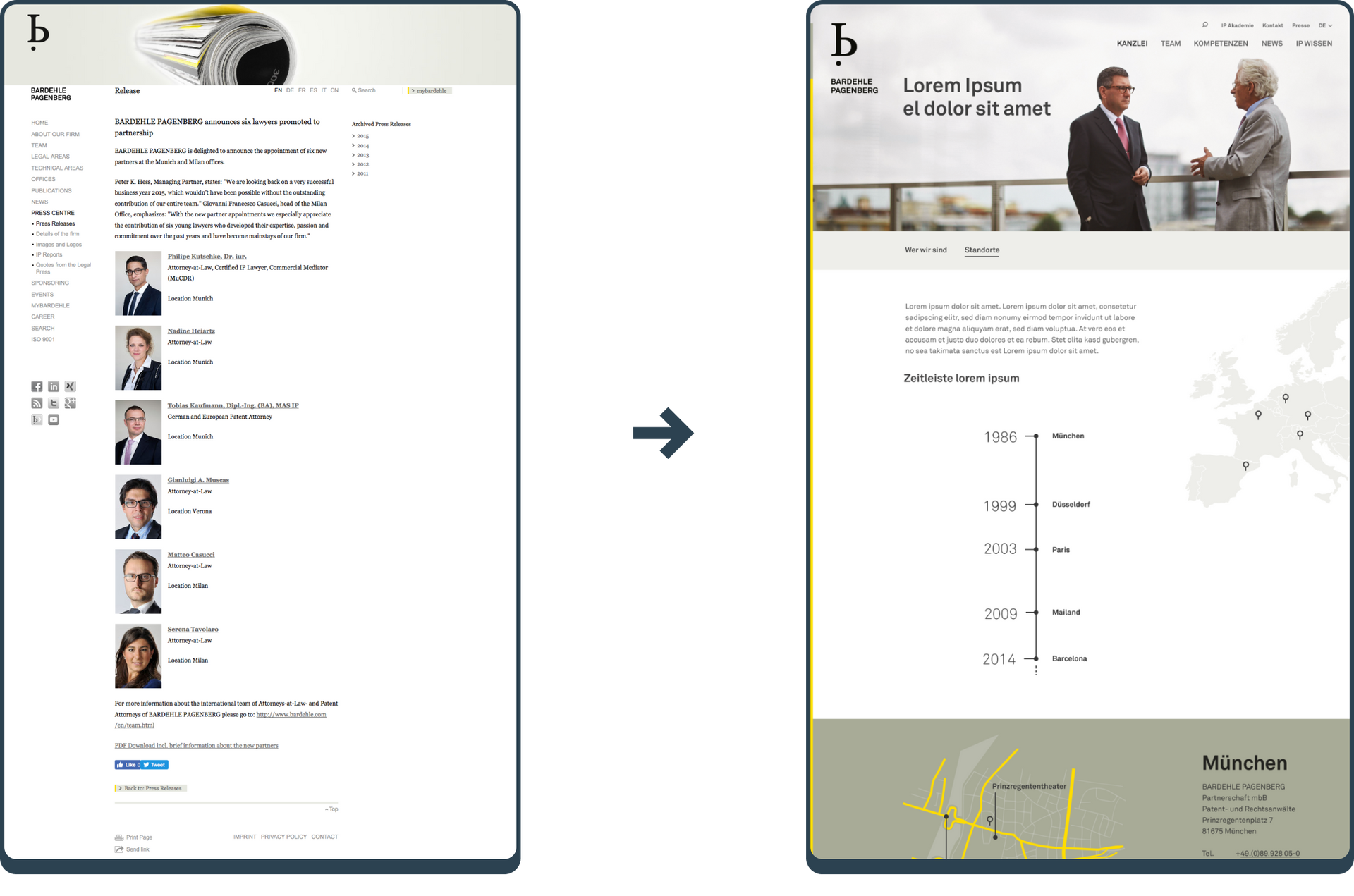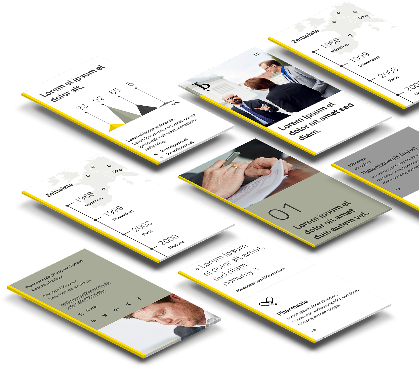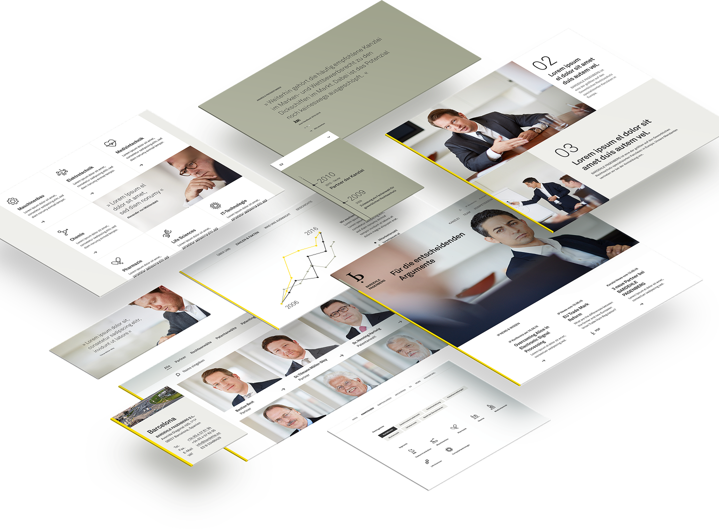 Im nächsten Schritt habe ich auf Basis einer systematischen Content-Analyse eine Content-Strategie entwickelt. Die Idee war es, die Navigationsstruktur sinnvoll aufzubauen – beginnend mit kanzleibezogenen Inhalten hin zu klar fachspezifischen Themen. So entstand eine Informationsarchitektur, die sowohl die Markenidentität als auch die fachliche Expertise transparent abbildet.